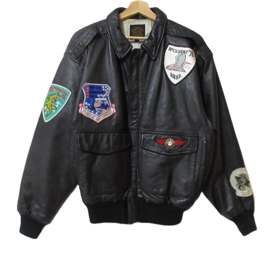 - メンズ > ジャケット・アウター > 激渋 アヴィレックス A-2 レザージャケット ボア付き 地図 黒 AVIREX アヴィレックス TYPE A-2 レザー ワッペン 内側地図柄