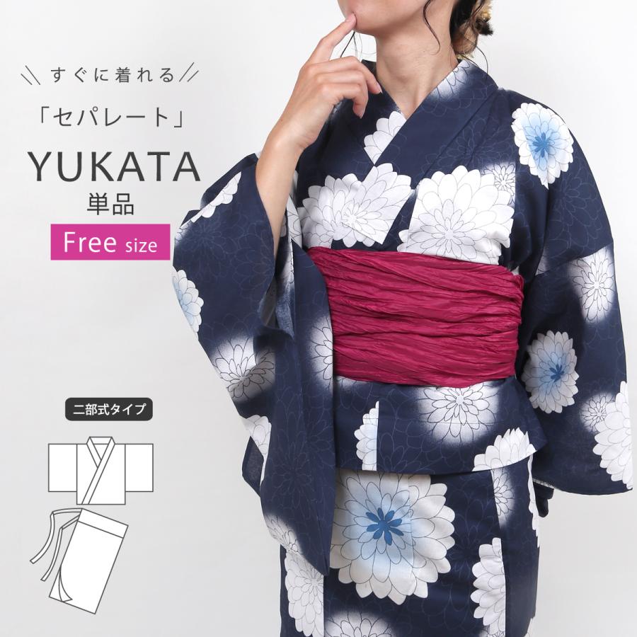 | メーカー | セパレート 二部式 レディース 浴衣 フリーサイズ ネイビー 花柄 兵児帯 新品 浴衣 |