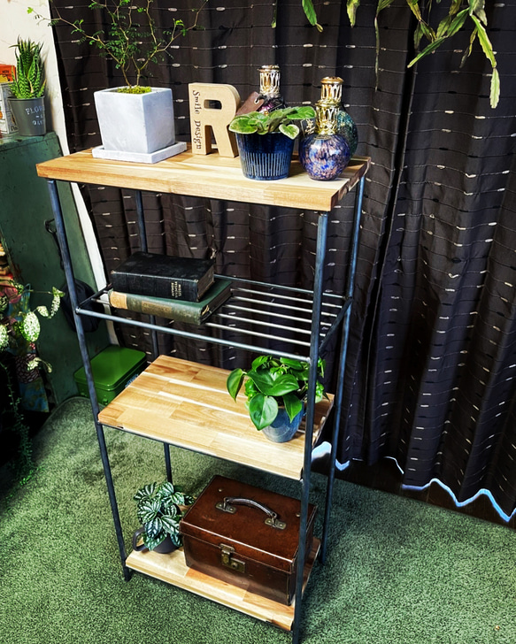- 机・テーブル > サイドテーブル・ナイトテーブル・ローテーブル > シェルフ ラック アイアン家具 ハンドメイド オーダーメイド 男前家具 アイアン家具 シェルフ 男前ラック 無骨インテリア オーダー