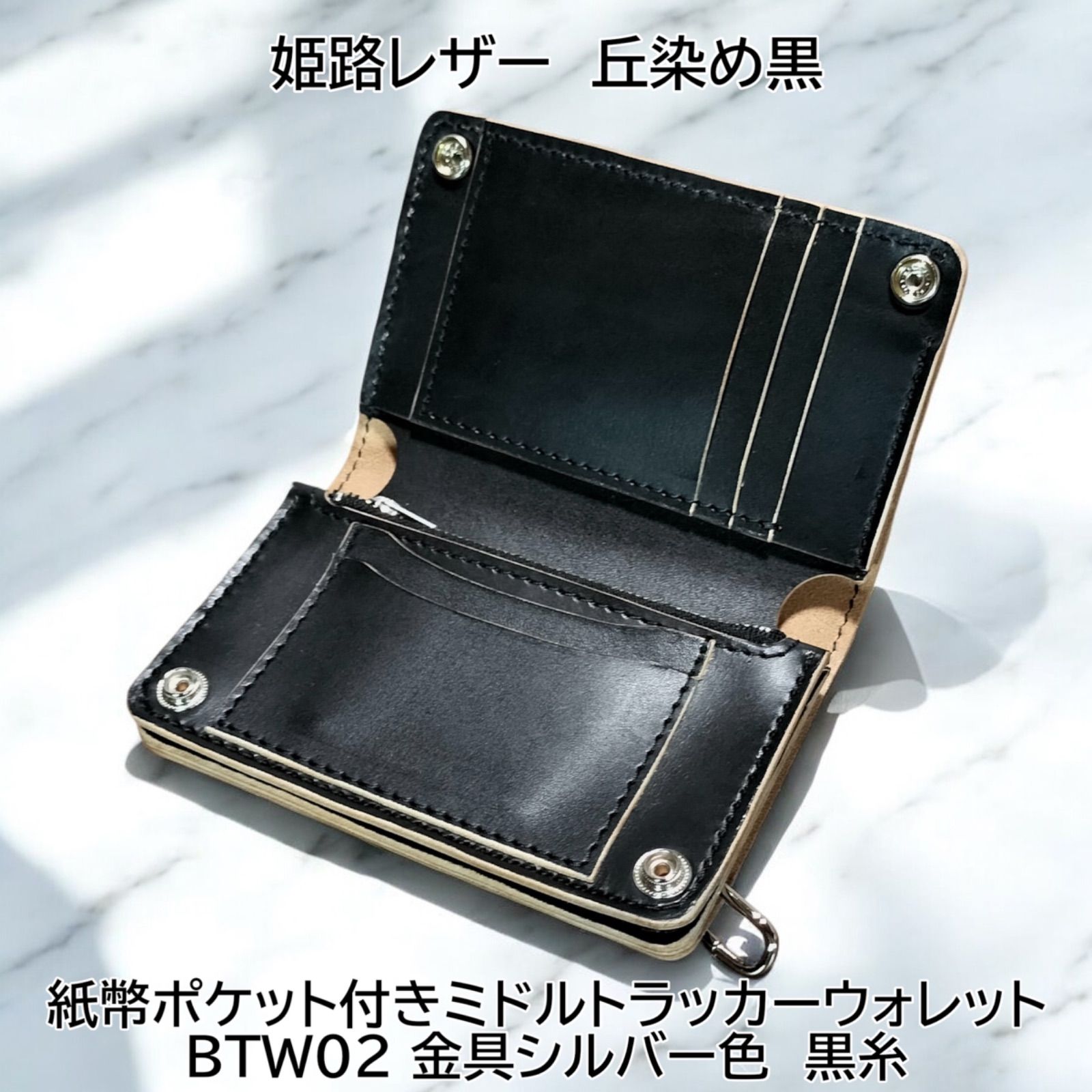 - ファッション小物 > 財布・ケース・小物入れ > ミドルトラッカーウォレット 丘染ブラック 国産本革 レザークラフト ハンドメイド ミドルトラッカーウォレット 丘染ブラック 国産本革 レザー
