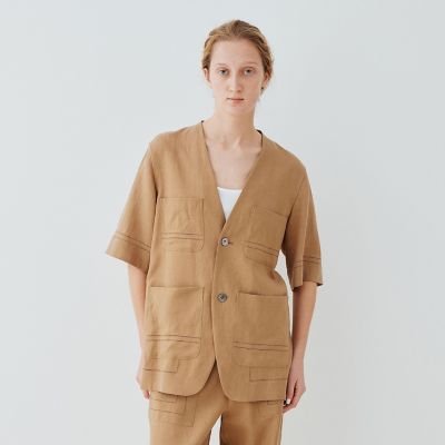 - レディース > ジャケット・アウター > 新作 GALERIE VIE リブコンビフレンチリネン ハーフスリーブジャケット リブコンビフレンチリネン ハーフスリーブジャケット | GALERIE