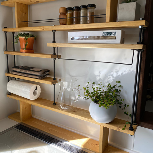 | 商品の特徴 | 新作☆キッチンラックCentral☆木目強調☆窓枠インテリア。穴を開けずに突っ張れる☆キッチンラックCentral☆木目強調☆窓。新作☆キッチンラックCentral☆木目強調☆窓枠インテリア。キッチンラック☆木目強調☆窓枠インテリア☆西海岸 ご要望多数の為説明書をお作り致しました初心者の方でも分かりやすい内容となっておりますのでご安心下さい(´∀`)☆ご覧頂きましてありがとうございます☆大人気のボルトラックの商品です☆カウンターキッチンの隅などキッチン周り窓枠などスパイスラックにぴったり☆多用途でご使用出来ると思います。新作☆キッチンラックCentral☆木目強調☆窓枠インテリア。写真はあくまでも例ですのでお好みの場所で使って下さい(´∀`*)ボルトを長めに設定しておりますので中の棚を上や下にお好みの高さで変えて頂けます^ ^色 ダークウォルナット 木目強調☆質感 かなり細かいペーパーをかけて塗装後にワックスをかけていますのでツルツルしております。。サイズ幅70cm高さ70cm奥行き9cm中棚横幅写真左横29cm 高さ42cm写真右 横30cm 高さ20cmで均等調節はもちろん 取り外し可能です(´∀`)こちらは、組み立て式ですボルトを締めるだけですので非常に簡単です。K 山善 YAMAZEN ウッドシェルフ 4段 アンティークブラウン。エイジング加工やハンドメイド品ですので理解ある人だけよろしくお願い致します。【美品】ラタンベンチ型2段チェスト 収納付きベンチ ラタン家具 テレビ台ラタン。観葉植物はつきません。コンポニビリ ラウンドエレメントH2 カルテル ホワイト 2段。#アイアンシェルフ#グリーンディスプレイ#観葉植物#フェイクグリーン#収納ラック#収納棚#ウィンドウディスプレイ#出窓インテリア #ブルックリンスタイル#男前インテリア #インダストリアル#プランターラック#34 5550 | ||