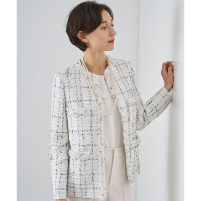 | メーカー | 新品 ANAYI ノーカラージャケット ツイード ミックス ホワイト アナイ 新品 |