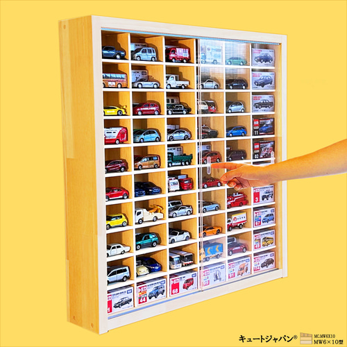 | 商品の特徴 | トミカ収納棚 アクリル障子付 120台 日本製 壁掛け 棚 トミカ。Nゲージ・ロングトミカ 対応 コレクションケース 24マス。トミカ収納棚 アクリル障子付 120台 日本製 壁掛け 棚 トミカ。【値下げしました。¥18,800- → ¥17,300-】【サイズ】 巾734ミリ/高さ594ミリ/奥行113ミリ。【マス目寸法】 巾694ミリ/高さ46ミリ/奥行80ミリ。アクリル障子付の収納ケース 未使用製作品 LW1×10型です。外枠にメルクシパイン集成材・中桟にたわみの少ない9ミリ厚のラワンベニヤを使用しています。天然素材の木の香り、ぬくもりを感じられます。中桟の前面にストッパーを取付けています。ホコリが入らず、大事に保管したい皆さまにご満足いただける一品と自負しております。コレクター様に『こんなの欲しかった!』 そう言わせたい一心で製作しました。コレクションがお好みのレイアウトで自在にディスプレイできます。ご自身用に・・。プレゼントにもおすすめです。ミニカーは付属していません、ケース本体のみの販売です。購入時の注意点:材料は建材を使用していますが、表面は天然木のため色目・木目・節の具合がその都度変わります。天然単板独特の節目・木目の濃淡・接ぎ目が目立つ場合がありますが、構造上問題はありません。製作では裏面の意匠は視覚的に重要視していません。ご了承ください。●重いものは中桟が垂れる恐れがあります。※中桟は固定式で可動はしません。サイズをご確認のうえご購入ください。●スライド式障子は光線透過率93%の高品質アクリル板3ミリ厚を使用しています。引手加工をほどこしていますので開け閉め楽々です。※コレクションに合わせて中桟の高さ変更は可能です。お問い合わせください。ご購入された方の『コレ、また欲しい!』の嬉しいご感想を励み(ビタミン剤です!)にして、日々製作を行っております。製作・販売元 株式会社キュートジャパン#トミカ#ホットウィール#京商#コレクション#ディスプレイ#トミカケース#ミニカーケース#トミカ収納#ミニカー収納#プラレール#おもちゃ#フィギュア#ガチャ#プレゼント。ミニカー収納ケース 48台 アクリル障子付 日本製 トミカケース。。4台まとめて ナスカー NASCAR hotwheels 1/24 1/64。ミニカー REITO MOLA GT-R SUPER GT500 2013 1/18。ジェイダトイズ JADATOYS 1971 CHEVY CAMARD 1/24。1/64 アオシマ グラチャンコレクション セット売り。トサ MR2 GT-S (1997 SW20) ブラック 1/43 ミニカー。希少アサヒ玩具ATC当時物ブリキトヨペットクラウン。MINI GT Nissan SILVIA S15 ゴールド 加藤会長サイン入り。廃盤 新品トミカリミテッドヴィンテージ エルフ ヤマザキ ファミマ 引越のサカイ。MINI-GT S15 LBWK 限定 ゴールド 1/64 ミニカー 原宿 1台。ミニカー SPRIT OF AMERICA LAND SPEED JET CAR 1/43。昭和レトロな車。ノレブ 1/18 ポルシェ ケイマン GT4 RS ブリュースターグリーン。トミカプレミアム 10周年 まとめ売り。スナップオン ミニカー 5台セット。ダッジコロネット ミニカー。新品 トミカリミテッド ニッサンスカイライン 12モデル vol.1。MINI GT lbwk ミニカー3台セット ER34 lamborghini。トミカリミテッド日産スカイライン12MODELS vol.1 【未使用・未開封】。東京オートサロン限定 スカイライン R34 GT-R Z-tune Proto。トミカ6種セット。ミニカー MINICHAMPS AT02 YUKI TSUNODA 1/43。ポピー マシン ハヤブサ ポピニカ PA-87。スナップオン Snap-on 1/34 1961 Divco Step Van | ||
