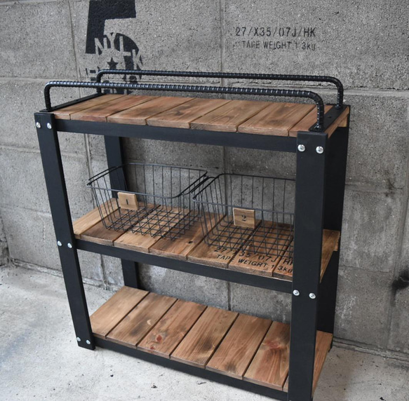 - 棚・ラック・シェルフ > 木製ラック・ウッドラック > 【かごつき】 男前インテリア アイアンバーラック 植物 インダストリアル 602 おまけかご付き】アイアンバーシェルフ 男前インテリア