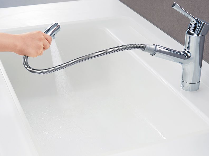 | 商品の特徴 | ハンドシャワータイプ | 水栓金具(キッチン) | 商品情報。ハンドシャワータイプ | 水栓金具(キッチン) | 商品情報。水栓金具(キッチン) | 商品情報 | TOTO株式会社。曲線的なデザインのハンドシャワー機能付き。TOTO 壁付シングル混合水栓(エコシングル、ハンドシャワー、共用。-品番:TKWC35E- 素材: ステンレス- デザイン: 曲線的なフォルム- 操作方法: ハンドル操作方式- 機能: ハンドシャワー機能- 水流: シャワー/ソフト/基本商品説明●台付き1穴シングルレバー混合栓●エコシングル●整流・ソフト(泡まつ)・シャワー吐水切り替え●ホース引き出し機能付き(引き出し長さ:450mm)●メタル(金属)ハンドル●水栓取付穴径:φ35〜40●施工時間を短縮するフレキホース採用●逆止弁:逆流防止弁付きご覧いただきありがとうございます。。 | ||