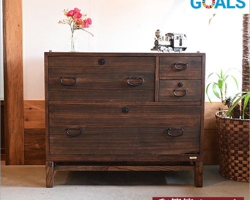 - 洋服タンス・押入れ収納 > チェスト・タンス > 味のある木製の引き出し2段 チェスト 桐箪笥 昭和レトロ タンス 古家具 古民家 アンティーク 和箪笥 桐箪笥 リメイク チェスト 木製 2段 収納