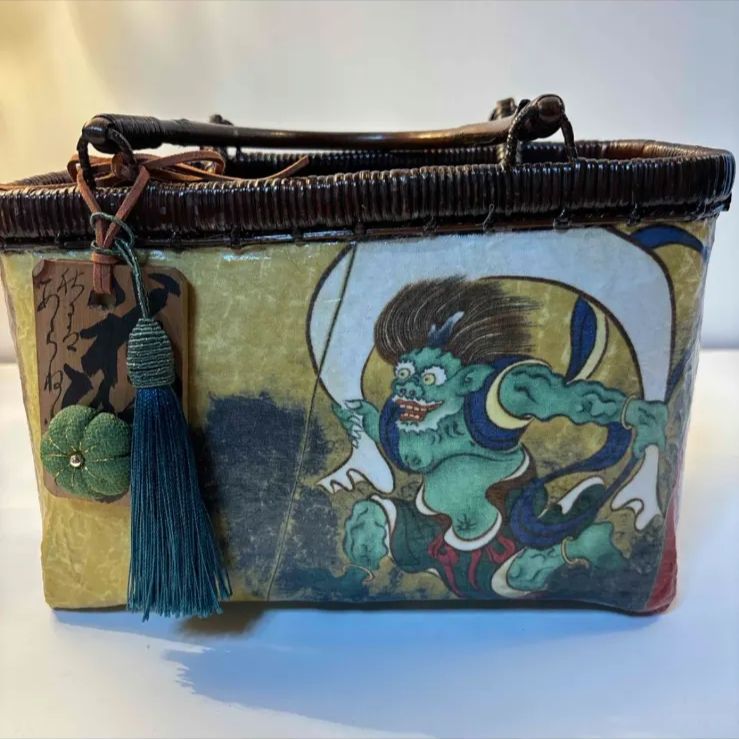 | 商品の特徴 | 一閑張りバッグ 風神雷神 - メルカリ。一閑張り 一閑張りバッグ 風神雷神 古文書 和紙 竹籠 籠バッグ。一閑張りバッグ 風神 – 一閑張り利庵。竹籠に和紙を重ね合わせて貼り、さらに和紙、古文書、着物を貼りその上から柿渋を数回塗り透明ニスをスプレーして丁寧に仕上げました。世界に一つの手作り籠バックで、お部屋のインテリアとして飾ることもできます。一閑張りバッグ 風神 – 一閑張り利庵。軽くて丈夫、使い込むほどに味わいがましてくると思います。。あけび籠 籠バッグ 有田焼チャーム付き。横 39.5センチ幅 20.5センチ高さ 26.5センチ | ||