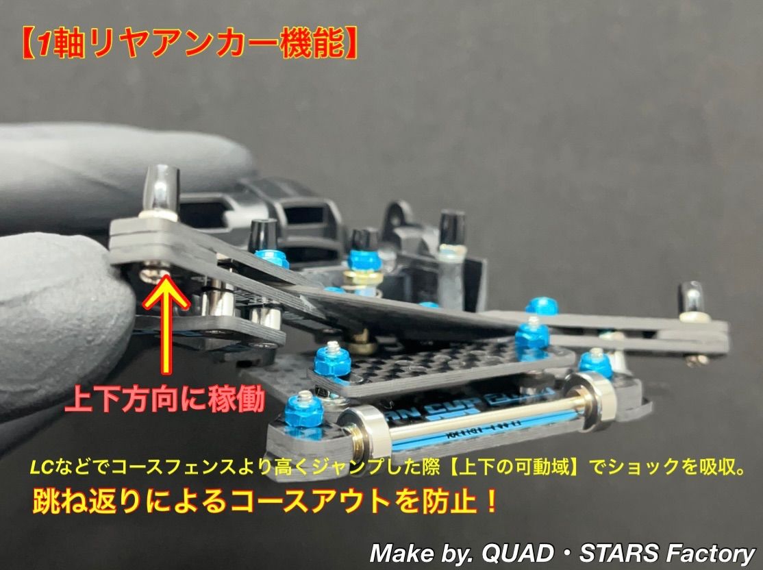| 商品の特徴 | MARU@様・専用】AR用 2軸ATピボット+1軸リヤアンカー+。ミニ四駆・MSシャーシ用】2軸ATピボットバンパー+1軸リヤ。ミニ四駆・MSシャーシ用】2軸ATピボットバンパー+1軸リヤ。。【オーダー内容】⚫︎2軸ATピボットバンパー 13,580円⚫︎1軸リヤアンカー/19mmローラー対応 18,980円⚫︎リヤスキッドローラー/830ベアリング 4,998円合計価格 37,558円※ARシャーシ/ブラック付属※ロックナットカラー/ブルー⚠️こちらのカーボンユニットは、加工やカスタムにある程度慣れた中級〜上級者向けのカスタムパーツです⚠️◉2軸ATピボットバンパーのレシピ・リヤブレーキステー/J-CUP2021 ×1・フロントワイドステー ×3・マルチ補強プレート ×1・スーパーXマルチ強化プレート ×1【スラダン用スプリング(4種類付属)】◾️ピボット部分:ハード/シルバー(セッティング済み) ×2◾️2軸部分: ミディアム/ゴールド(セッティング済み) ×2【交換用】◾️ソフト/ブラック ×2◾️スーパーハード/シルバーメッキ ×2⚫︎2軸ATピボットバンパーの重さ:約12.8g◉1軸リヤアンカー/19mmローラー対応のレシピ・リヤブレーキステー/J-CUP2021 ×1・マルチワイドリヤステー/J-CUP2024 ×2・直プレート ×3・キャップスクリュー/20.3mm ×1◉ローラーアンダーガード・リヤブレーキステー ×2・アルミスペーサー/3mm ×4◉リヤスキッドローラー・リヤブレーキステー/J-CUP2021 ×1・830ベアリング/AO-1008 ×2・両軸モーターピン ×1【ダンガン用タルバネ(2種類付属)】◾️1軸部分:ハード/シルバー(セッティング済み) ×1【交換用】◾️ソフト/ブラック ×1⚫︎1軸リヤアンカーの重さ:約18.4g【追加オプション】①フロント提灯/カーボン 3,998円②ARシャーシ用・Aパーツ 598円✅その他のご要望も【コメント欄】から承ります^ ^↓↓よろしければ他にも出品していますのでこちらも併せてご覧ください↓↓#QUAD・STARS/MSシャーシの商品一覧はこちら↑↑タップでミニ四駆のみの見やすいページに飛びます↑↑【ご案内】・タミヤ純正パーツのみを取り扱っておりますので、公式レースでも安心してご利用いただけます。ミニ四駆】2軸ATピボットバンパー+1軸リヤアンカー+。・カーボンユニット以外は別売ですm(_ _)m | ||