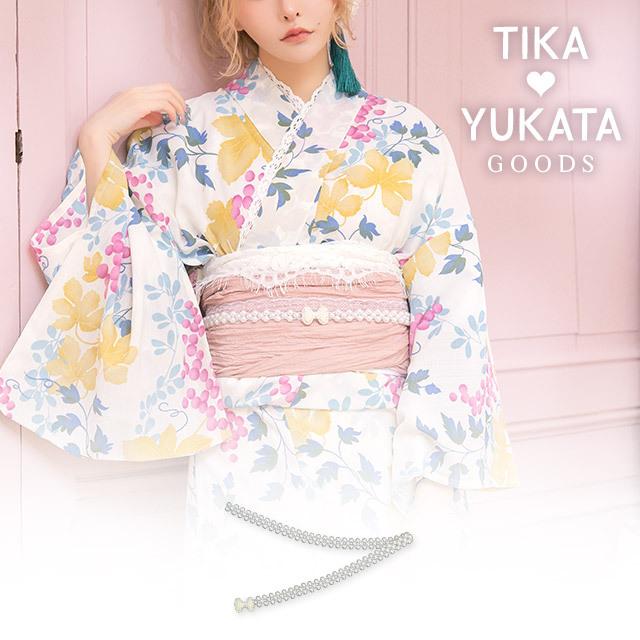 | メーカー | 青い花柄浴衣・帯セットパール飾り紐付き! Tika |