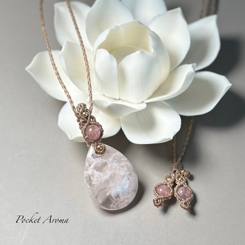 | メーカー | 『桃奏』セリサイトインローズクォーツとディープローズクォーツのマクラメネックレス |