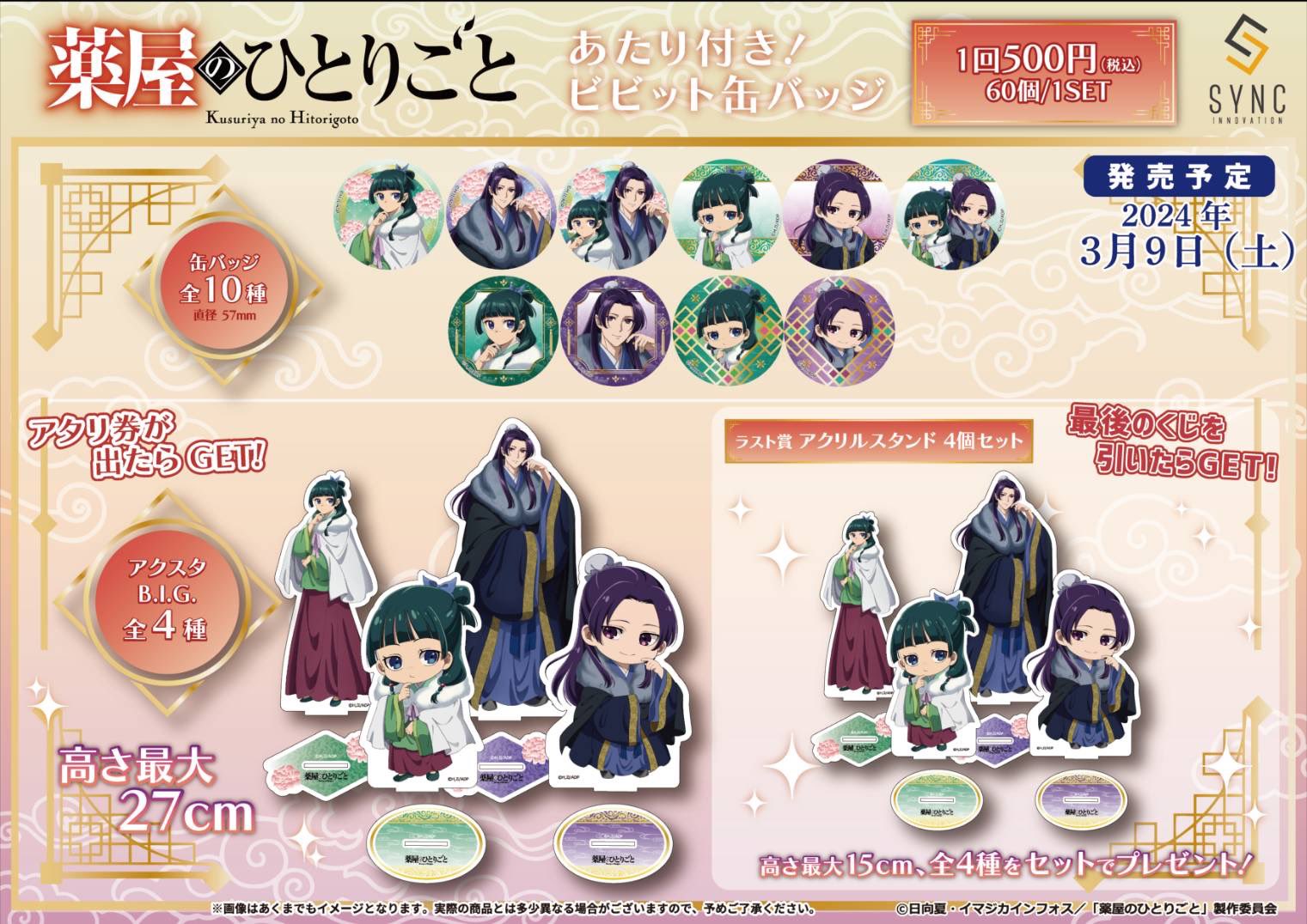 - キャラクターグッズ > アクリルスタンド > 薬屋のひとりごと ビビット缶バッジ ラスト賞 アクリルスタンド 猫猫 壬氏 薬屋のひとりごと ビビット缶バッジ アクリルスタンド 猫猫 壬氏
