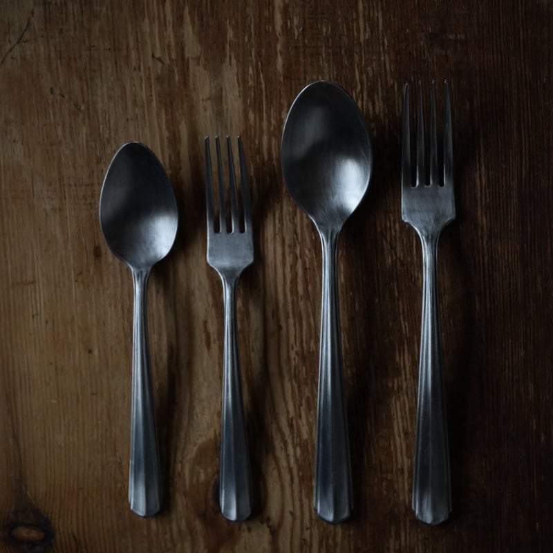| 商品の特徴 | ryoカトラリー / 竹俣勇壱 | gallery yaichi。ななみ【新品】竹俣勇壱Ryoシリーズ フォークナイフスプーン各2。ななみ【新品】竹俣勇壱Ryoシリーズ フォークナイフスプーン各2。【Takemata Yuichi】石川県金沢市にアトリエを構える竹俣勇壱さん。竹俣勇壱 NEW スプーン・フォーク・ナイフ|カトラリー|オルネ。彫金師としてオーダージュエリーを手掛けながら、カトラリーなどの日用品の制作にも取り組んでいます。。金属の板を叩いて形成する鍛金技法を用いてつくるのは美しい所作を演出するオリジナルのカトラリー。クリストフル ティースプーン。そして、日本に洋食器が輸入され始めた頃の金型をいかしたryoシリーズ。銀製 STERLING 950 湯豆腐スプーンとストロー スプーン 8点セット。こちらは、猿山修さんがデザインを行い、新潟県燕市の田三金属がプレスをしたものに、竹俣さんが古色仕上げを施しています。ZWILLING J.A. HENCKELS カトラリーセット 27点。どちらも侘びた存在感が印象的で、和食器やアンティークのうつわが並ぶ食卓にすっと馴染んでくれるのです。MARUNAO 木製箸 2本セット。 | ||