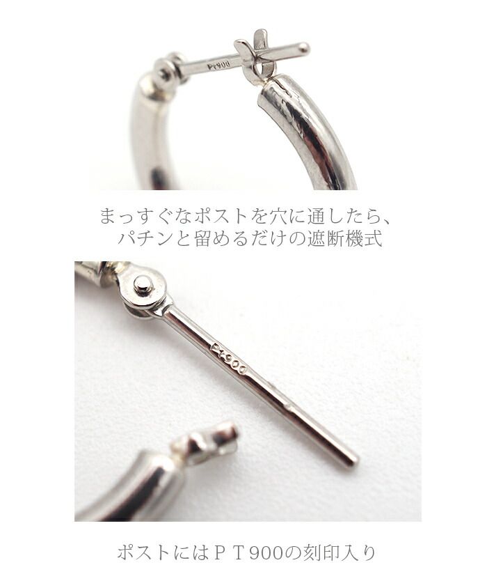 - レディース > アクセサリー > プラチナ【2×15mm定番フープピアス 】pt900刻印入 日本製 ペア 新品! プラチナ フープピアス 細い 小さい PT900 幅2mm×直径15mm