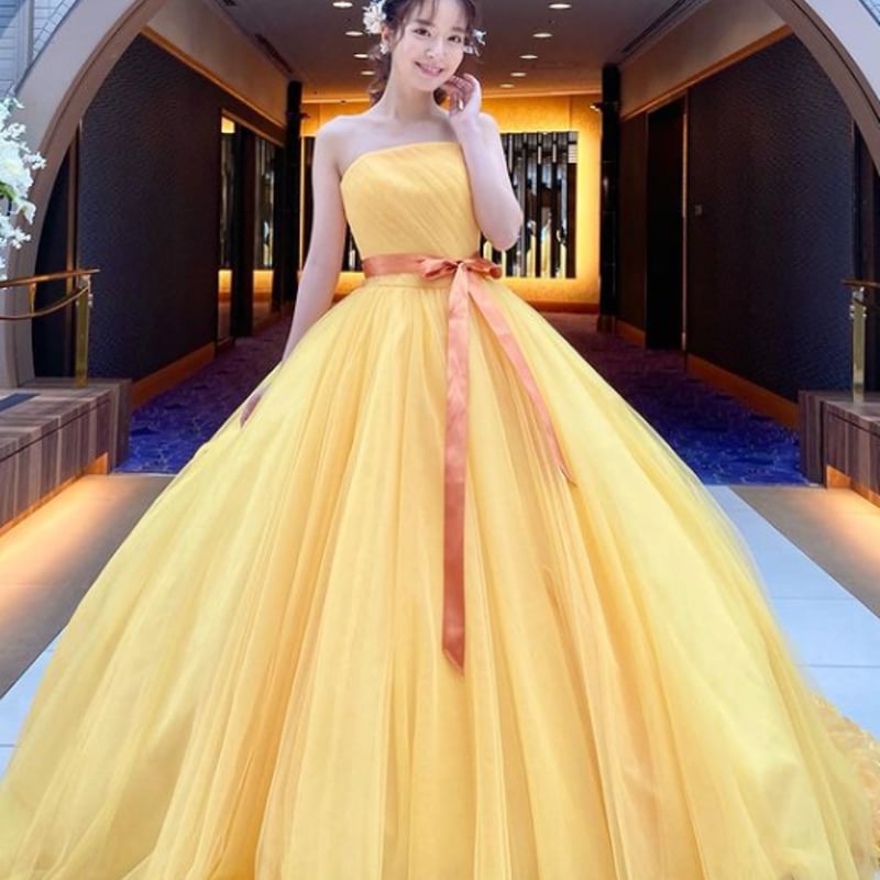 - レディース > スーツ・フォーマル・ドレス > 結婚式 カラードレス 新婦 イエロー 黄色 ゴールド 系 パニエ ウエディング 豪華! カラードレス パーティードレス イエロー 【お買得パニエ