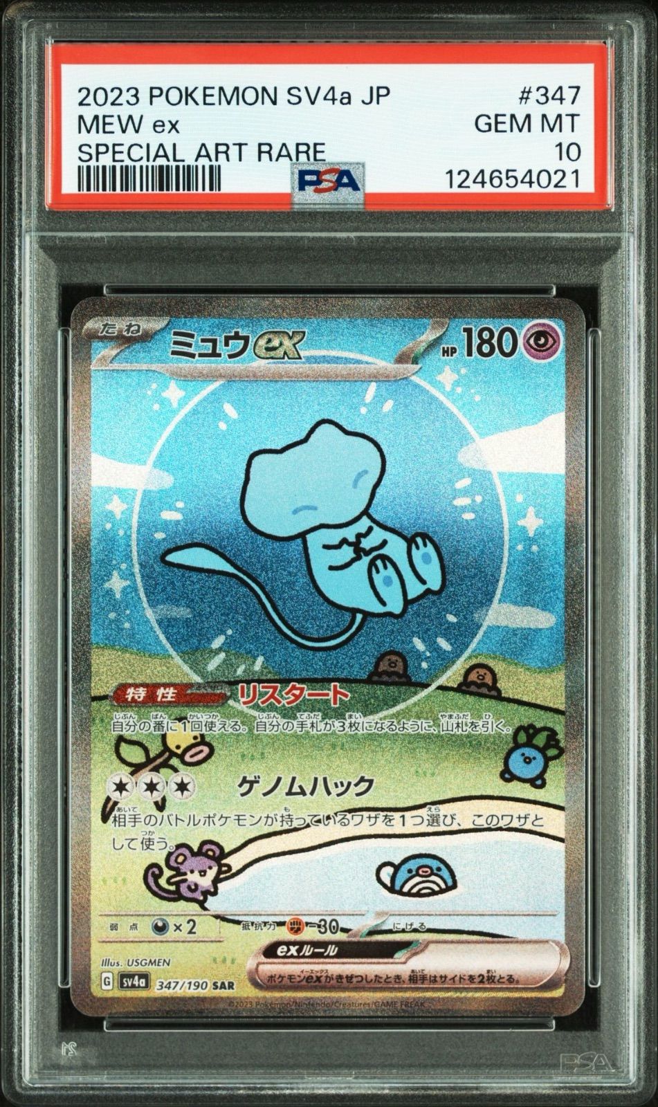 | 商品の特徴 | PSA10】 ミュウex SAR シャイニートレジャーex - メルカリ。ミュウ ex SAR PSA10 ワンオーナー シャイニートレジャー。ミュウex SSR PSA10 シャイニートレジャーex ポケモンカード。自身で鑑定に出したワンオーナー品です。。即購入可能です。ミュウex SAR PSA10 シャイニートレジャーex 347/190。画像を確認した上で購入検討のほどよろしくお願いします。すり替え防止のため返品対応はご遠慮させていただきます。ポケモンカード ハッピーセット 10個。ポケモンカード リーフィアEX 192/XY-P 未開封 プロモ。You can purchase immediately.Please rest assured that we purchase from the official manufacturer.This is a one owner item that I submitted directly to PSA. Therefore, there is no worry about fakes.I will be exhibiting items from my collection.*Just because it is PSA9.10 does not mean it is in perfect condition.There may be initial scratches such as white spots, hollow spots, missing dots, veal and horizontal lines, etc. There may also be scratches on the case from the beginning.To prevent any trouble, we do not respond to comments regarding the condition of the card.In addition, we do not accept returns to prevent replacement.検索ワードリザードン ピカチュウ ブラッキー ゲンガーギラティナイーブイミュウ ミュウツー ルギアレックウザリーリエナンジャモムンクゴッホ R団SARPSA10マスターボールイーブイヒーローズ蒼空ストリームテラスタルフェス超電ブレイカーポケモンカード15125thanniversary バトルパートナーズロストアビス 熱風のアリーナロケット団の栄光VSTARユニバースブラックボルトホワイトフレアメガブレイブメガシンフォニア | ||