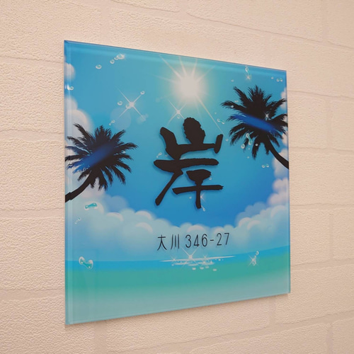 | メーカー名 | 75512f3 | ブランド名 | ちょこりんちょこたん*青空とヤシの木背景アクリル表札*45度斜めカット |