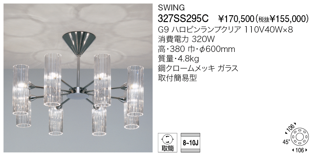 - ライト・照明 > シーリングライト・天井照明 > 最終価格YAMAGIWA SWING シャンデリア 327SS295C 8灯 最終価格YAMAGIWA SWING シャンデリア 327SS295C 8灯 最終価格