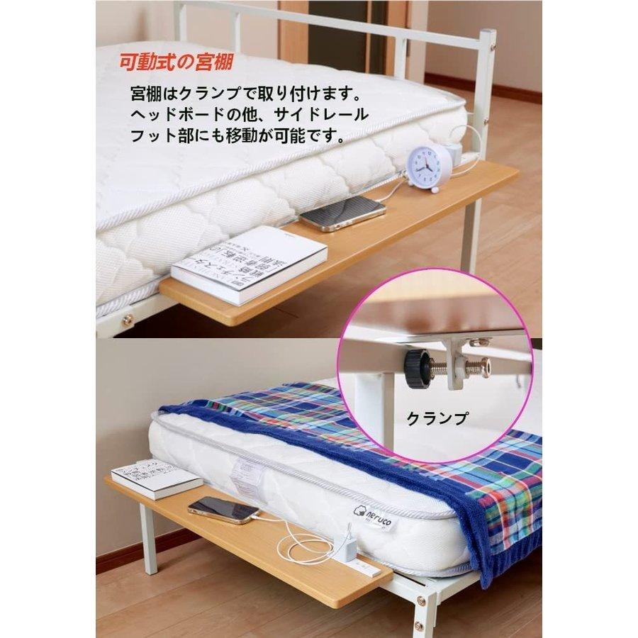 - ベッド・マットレス > 簡易ベッド・折りたたみベッド > 宮棚付きパイプベッド シングルベッド ホワイト センター脚付きで耐荷重も安心 宮棚付きパイプベッド シングルベッド ホワイト センター脚付き
