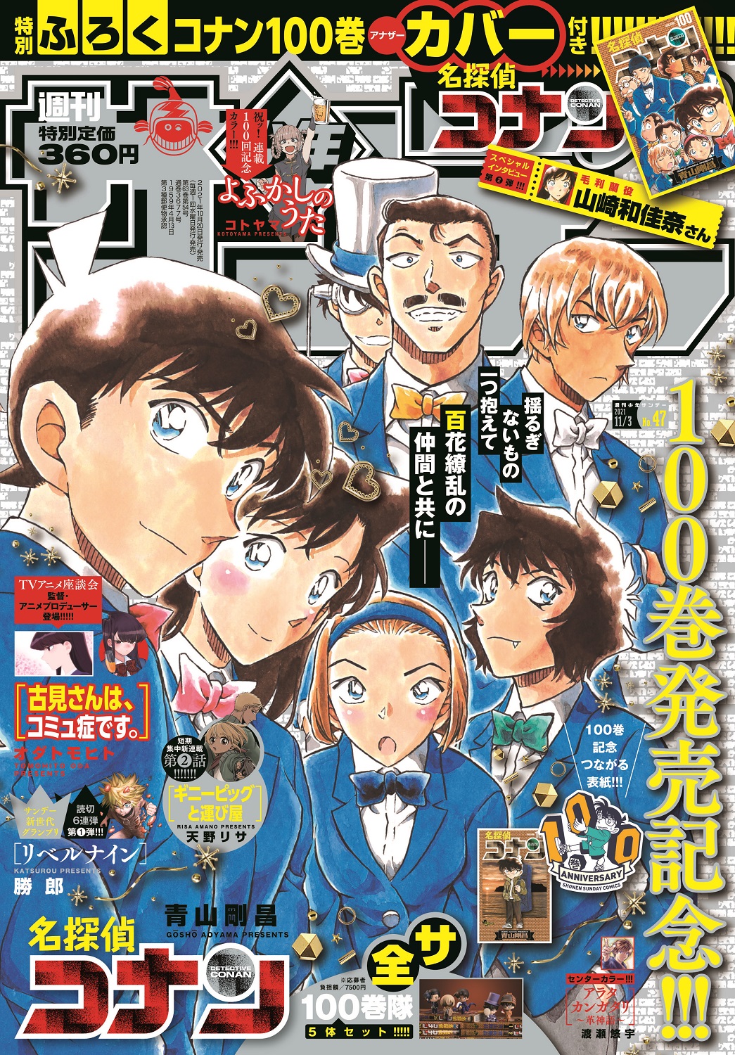 | 商品の特徴 | 江戸川コナン on X: 。91ysQZEUuML._UF350,350_QL50_.jpg。名探偵コナン」の縦に繋がる表紙第1弾! 「週刊少年サンデー。購入してすぐにOOP袋に入れ光の当たらない場所で保管していました。素人管理のため神経質な方はご遠慮ください。サンデー史上初! 本日4月25日発売の「少年サンデーS」のふろく。一度も読まず付録もそのままです。。漫画 ダンダダン 1~18巻。100巻 発売目前 記念表紙 次号、前号とつながる コナンSP号 週刊少年サンデー 2021年 10月27日号 No.46特別付録:犯人の犯沢さん & ゼロの日常 描き下ろしピンナップポスター・100巻 発売記念 2021年 11月3日号 No.47 名探偵コナン 100巻 特別ふろく Another cover 付き | ||