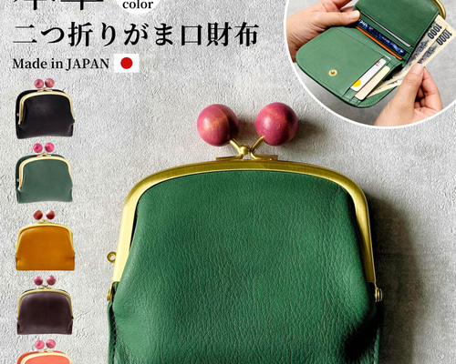 - ファッション小物 > 財布・ケース・小物入れ > がま口 二つ折り財布 本革 日本製 革 財布 レディース 二つ折り 財布 木玉 f8a14b6859890c79597066d4350a71